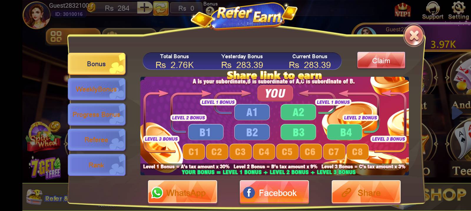 Earn daily rewards, free spins, referral bonuses, and cashback offers.