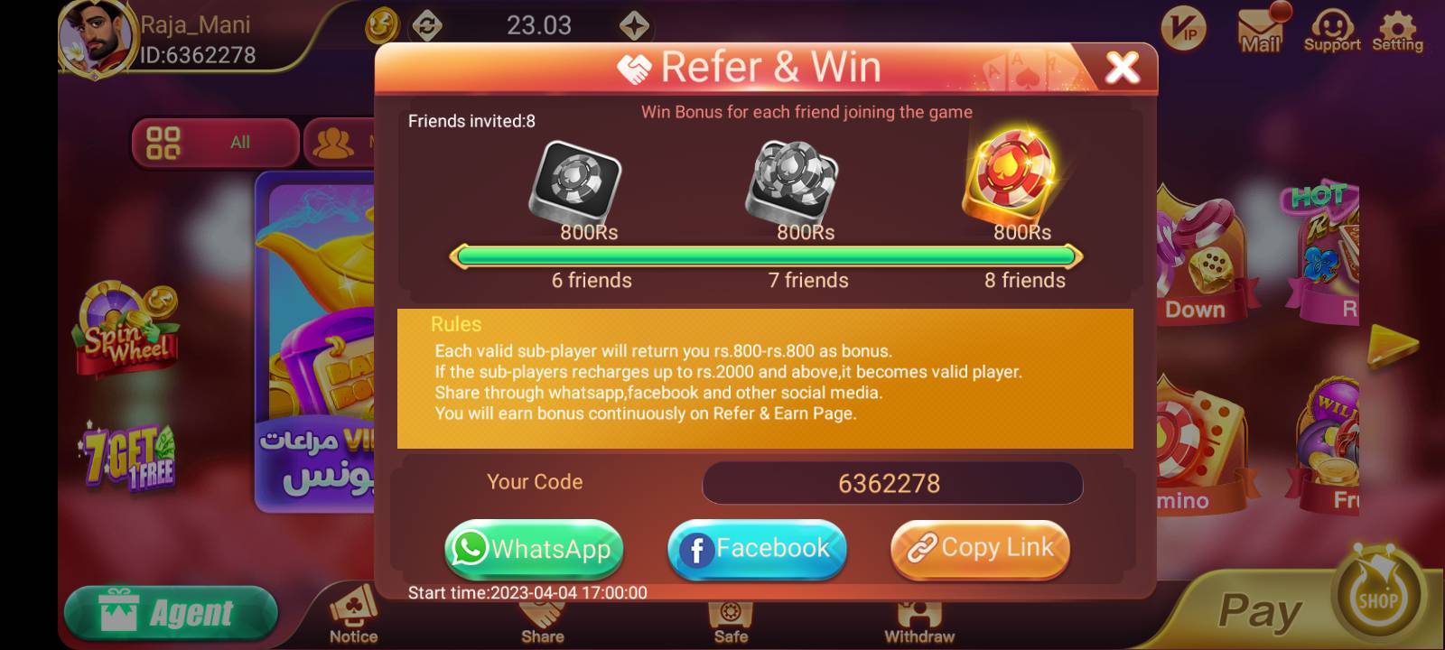 Players can earn extra cash by inviting friends to join the app. Each successful referral adds to your account balance, and your friend also benefits with a sign-up bonus. This program allows you to build a network while earning passively.