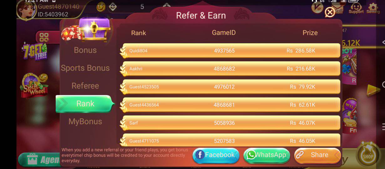 S9 Pro offers diverse gameplay modes, from solo challenges to multiplayer tournaments. Favorites like Teen Patti and Dragon vs Tiger provide fast-paced action, while slot games and Crash appeal to luck-based players. Leaderboards track top performers, offering exclusive rewards for high rankings. Players can earn through: